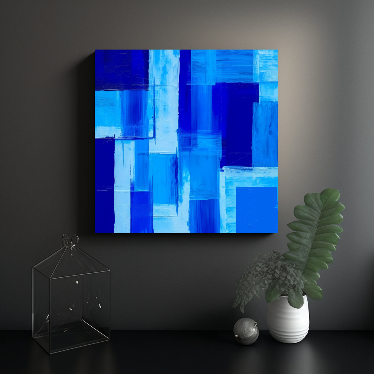 Coloca este cuadro en la sala de estar sobre un mueble blanco para resaltar los tonos azules y verdes Combínalo con cojines en tonos similares para crear un ambiente armonioso y sofisticado