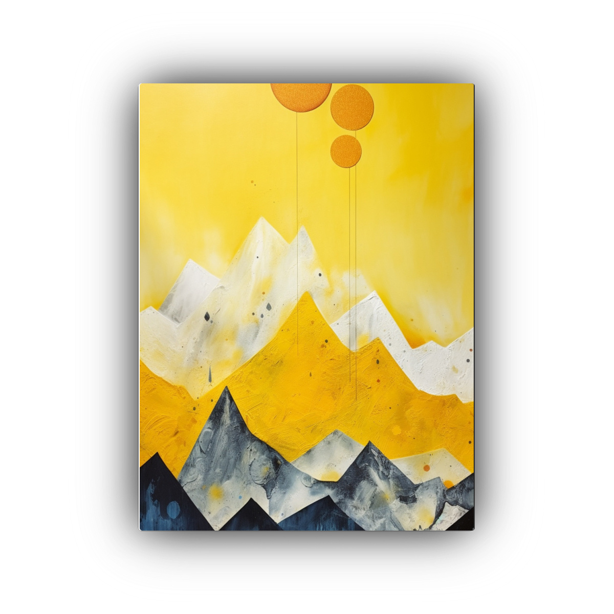 Este cuadro floral de montañas con composición vanguardista en colores brillantes sería ideal para decorar tu sala de estar Colócalo sobre un sofá de color neutro para que resalte su vibrante paleta de colores Además, puedes complementarlo con cojines en tonos similares para crear una armonía visual en toda la habitación