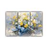 Atrévete a resaltar cualquier espacio con este Tríptico Conceptual Luminosidad A Yellow AND Cyan Colors flowers painting on canvas in th Con una paleta de colores Azul Marino grisaceo, Dorado, Plateado, Turquesa, Gris, Beige y Chocolate, este cuadro exclusivo añadirá luminosidad y elegancia a tus paredes Compra ya en DecoCuadros y sorpréndete con nuestra variedad de diseños únicos