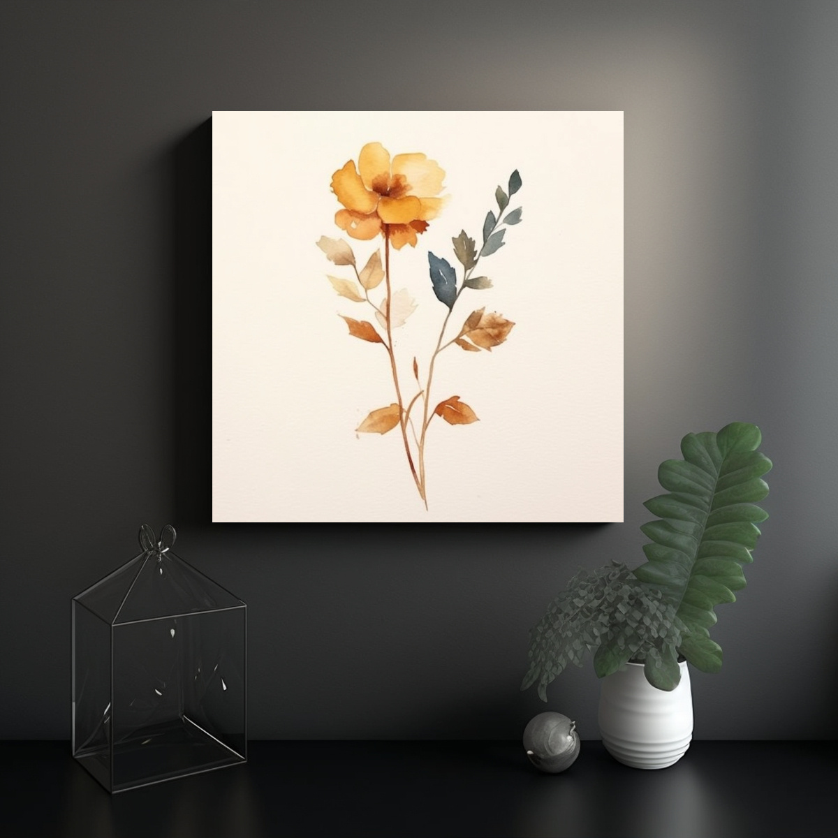 Cuadro Floral Minimalista De Acuarela En Estilo Pop Art