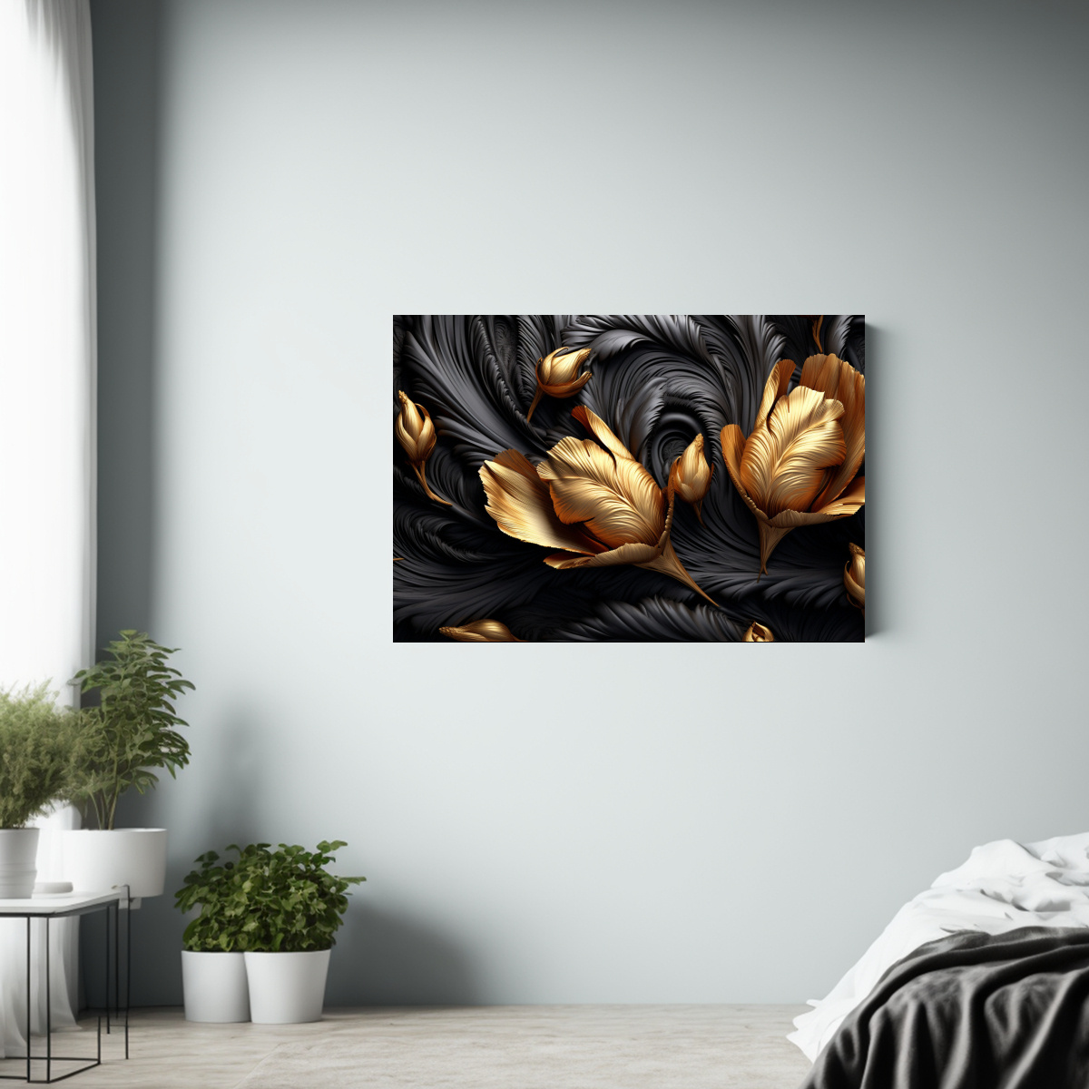 Coloca el Cuadro Floral Tulip 3D en Tela Negra en tu sala de estar para crear un ambiente sofisticado y moderno Combínalo con muebles en tonos neutros para resaltar su elegancia y contraste ¡Atrévete a darle un toque único a tu hogar!