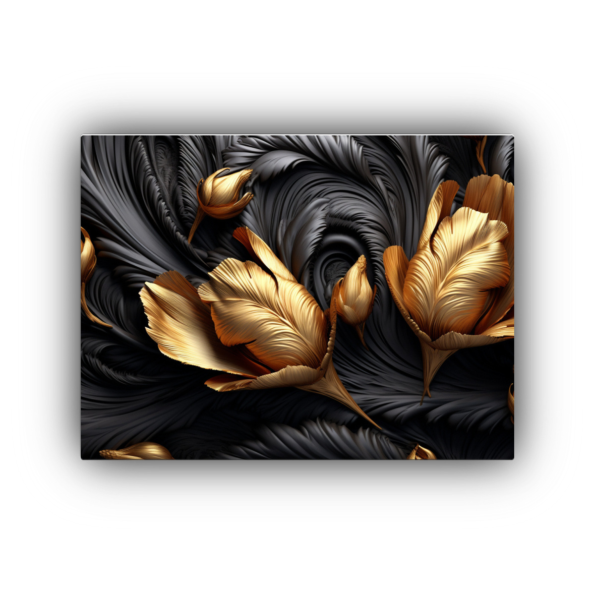 Cuadro Floral Tulip 3D Detalle Alto Contraste Y Elegante En Tela Negra