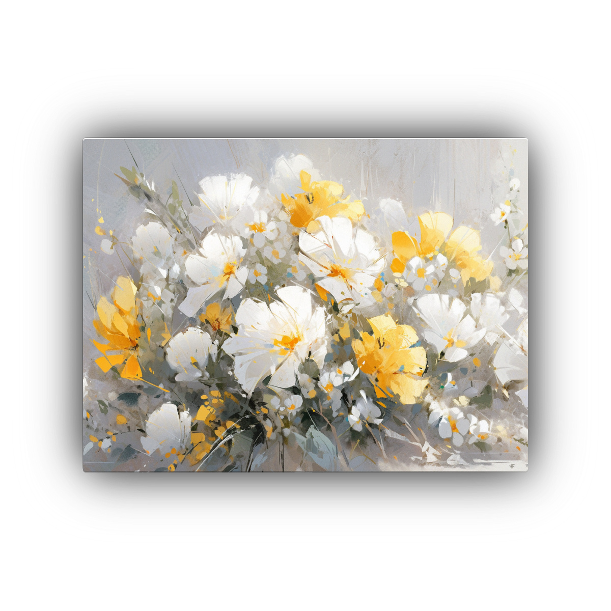 Cuadro Flores Amarillas Plata Belleza Natural En Tela En Bastidor