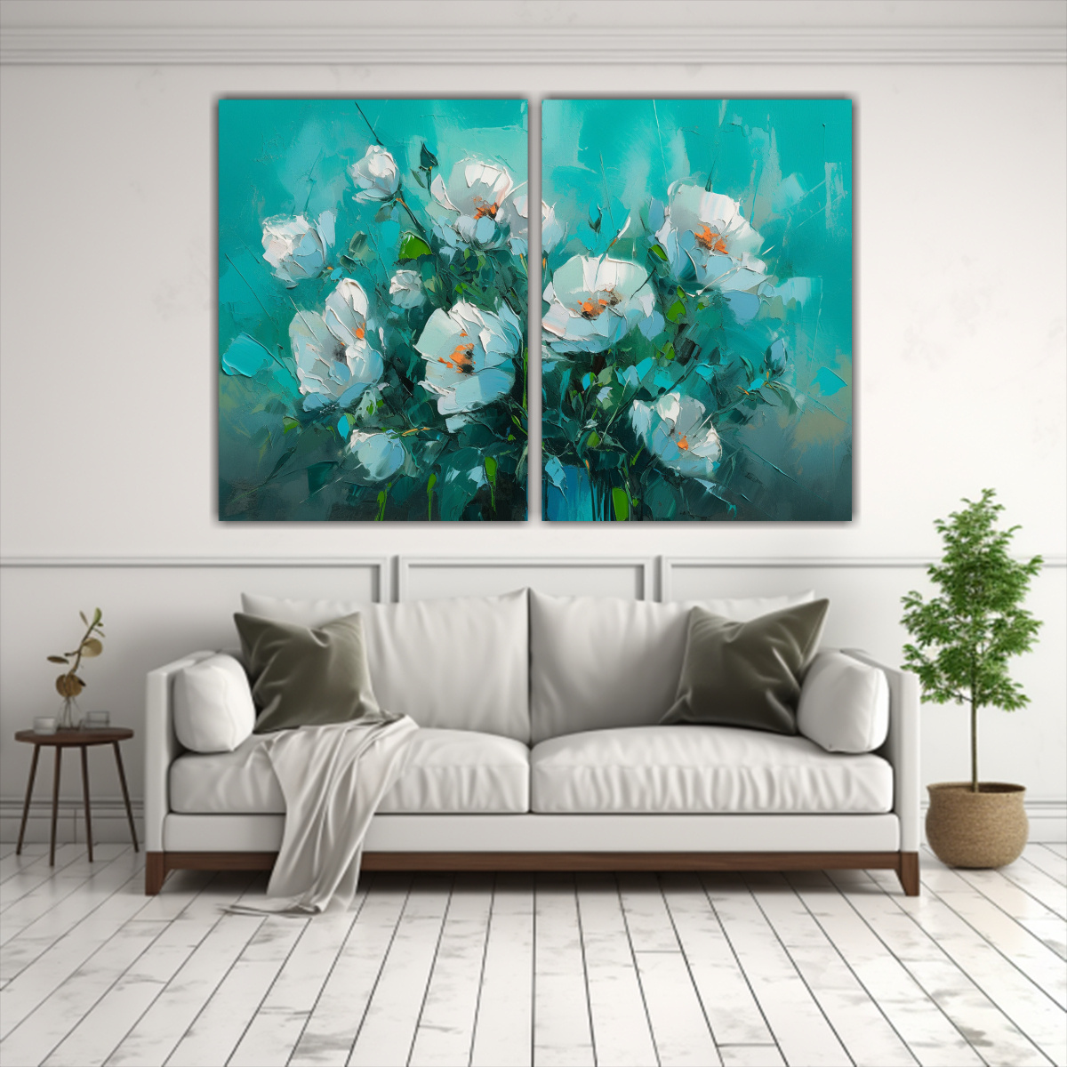 Este cuadro Flores Turquesa en lienzo es ideal para colocar en el área del comedor o en la sala de estar Combínalo con muebles en tonos neutros para resaltar su belleza y crear un ambiente sofisticado y moderno