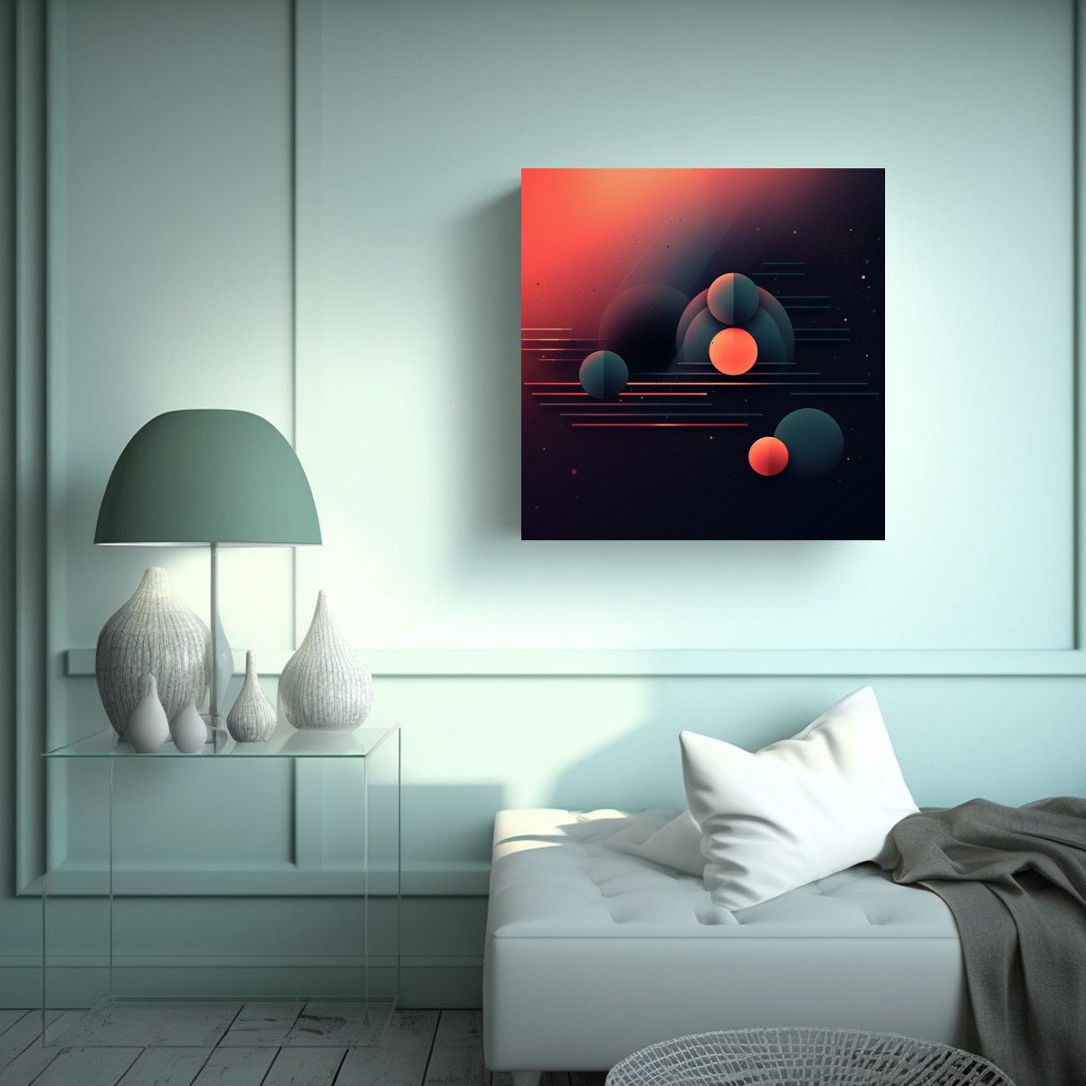 Coloca el Cuadro Forma Abstracta de Fondo Místico Minimalista Oscuro en tu sala de estar para crear un ambiente relajante y misterioso Combínalo con muebles en tonos neutros como el blanco y el gris, y agrega cojines en tonos coral y azul marino para resaltar los colores del cuadro ¡Tu sala se convertirá en un espacio único y moderno!