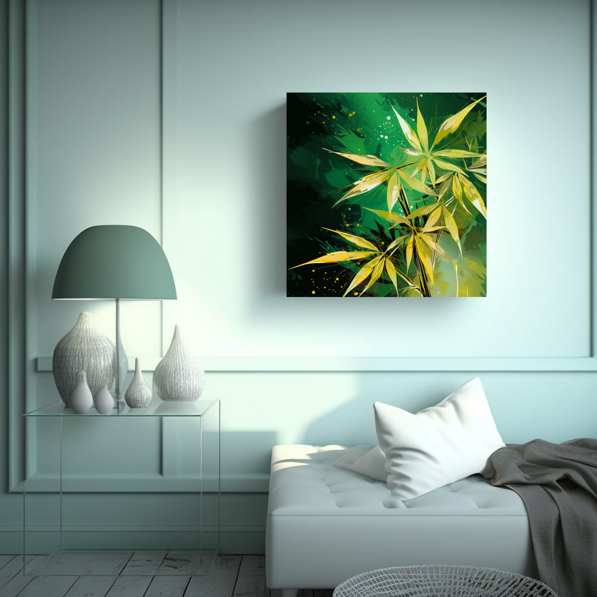Decora tu espacio con estilo y elegancia con el cuadro de fotografía de hojas de bambú en colores verdes y dorados Impreso en tela de alta calidad con bastidor de madera Envío gratis en Santiago