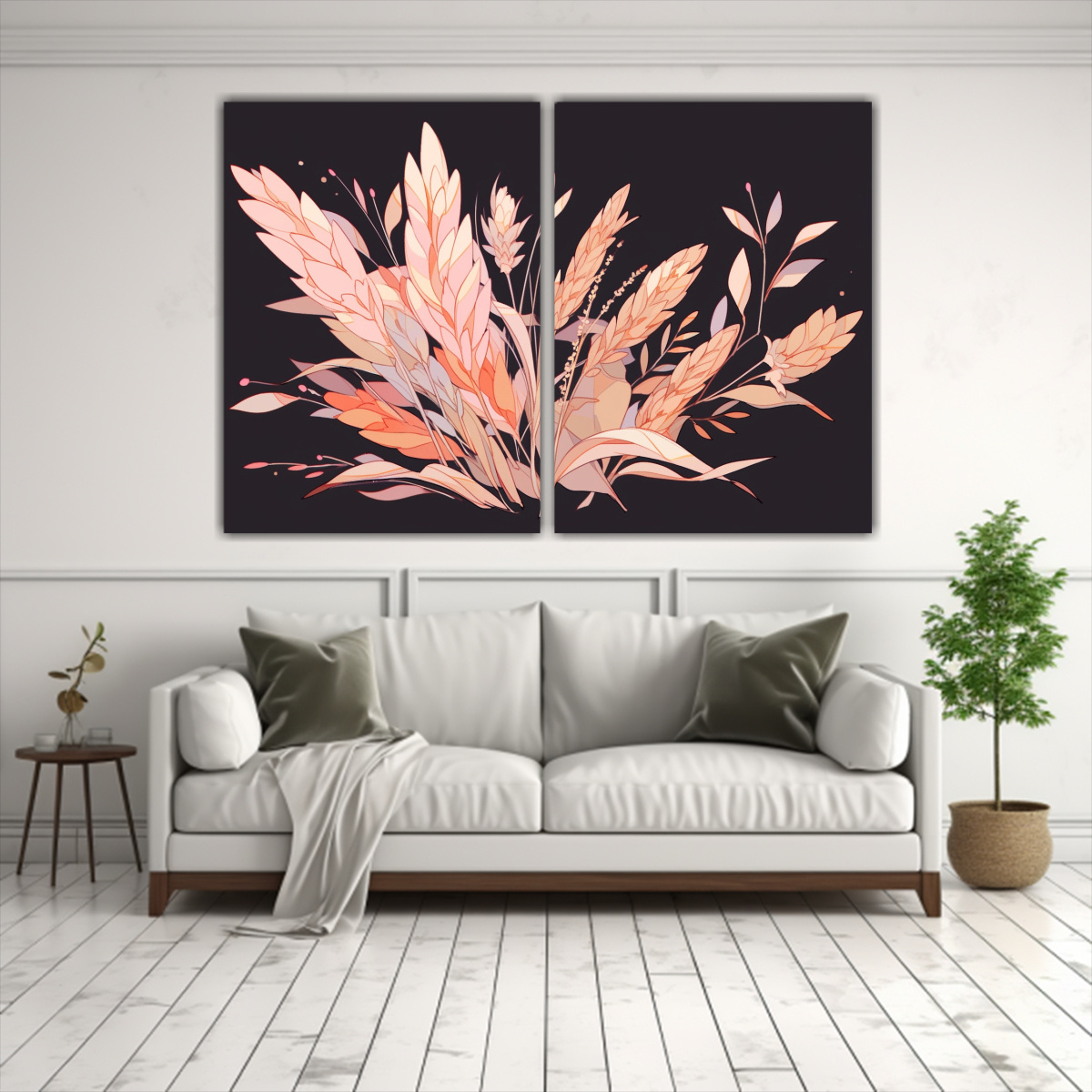 Coloca este cuadro en la pared principal de tu sala para crear un punto focal fascinante Combínalo con muebles en tonos neutros para resaltar su belleza y lograr un ambiente equilibrado y elegante ¡Atrévete a darle a tu espacio un toque neo-noir con este cuadro de Trigo en Colores Apagados de DecoCuadros!