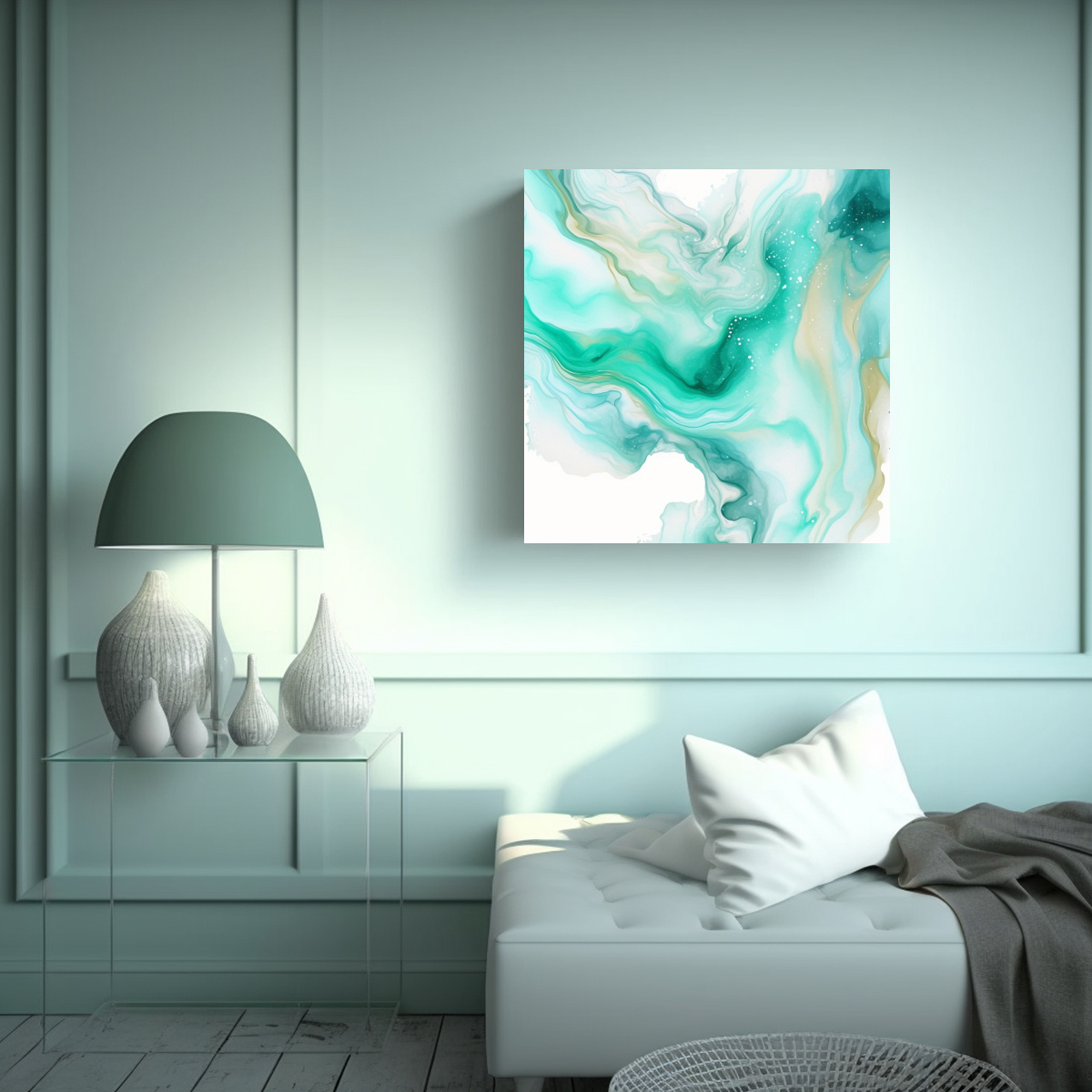 Este hermoso cuadro Watercolor de Fondo Mármol Cyan Pastel Mint es perfecto para decorar tu sala de estar Colócalo sobre una pared en tonos blancos o grises para crear un contraste elegante Combínalo con cojines y cortinas en tonos menta y turquesa para lograr una armonía en la decoración ¡La frescura de este cuadro le dará vida a tu espacio!