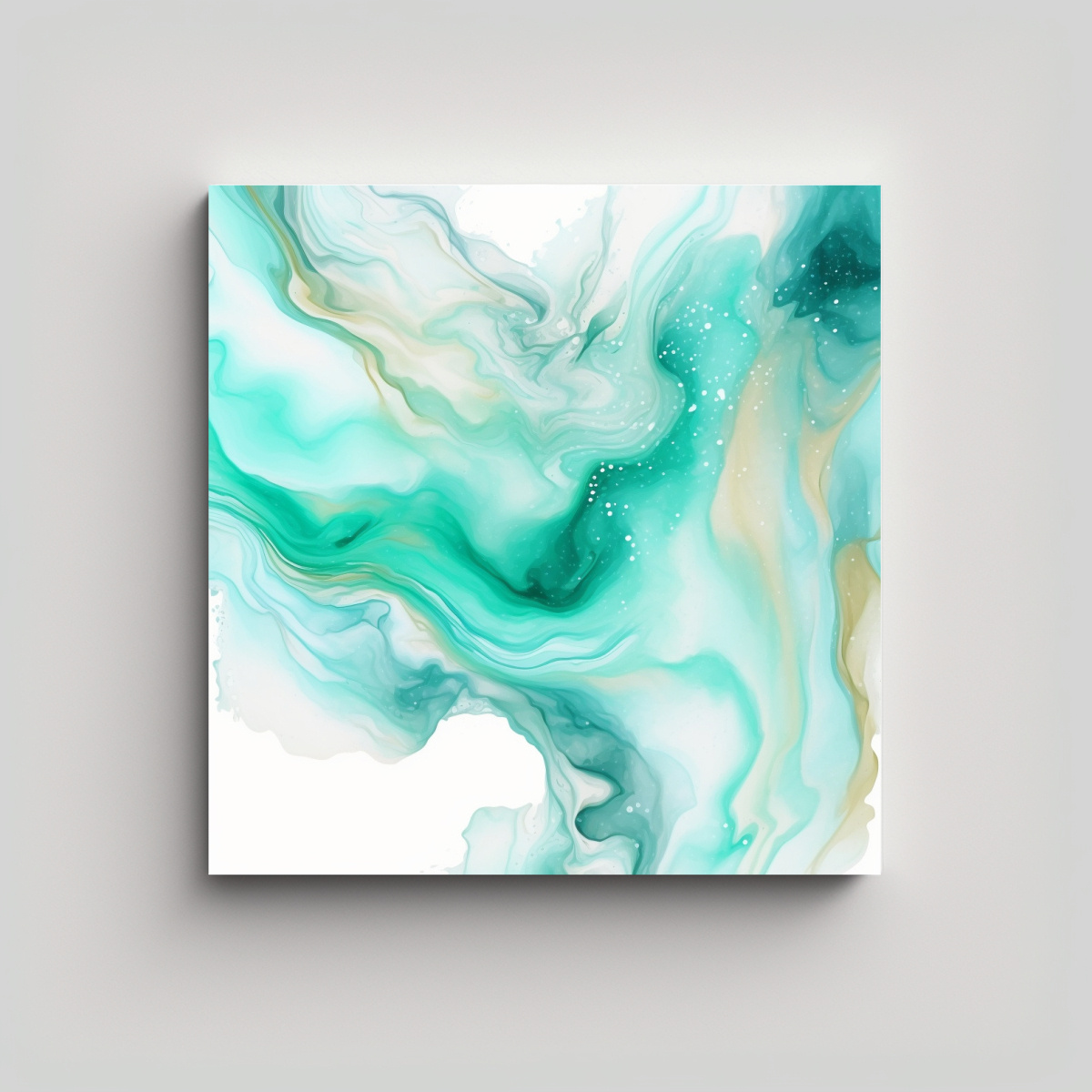 DecoCuadros te presenta el Cuadro Fotografía Watercolor de Fondo Mármol Líquido Cyan Pastel Mint Su diseño exclusivo en tonos beige, menta, turquesa, aguamarina, verde azulado, plateado y gris, impreso en tela de alta calidad con bastidores de madera, hará que tus espacios luzcan increíbles Obtén la mejor calidad del mercado y precios económicos Entregas rápidas y gratuitas en Santiago y envíos express a regiones