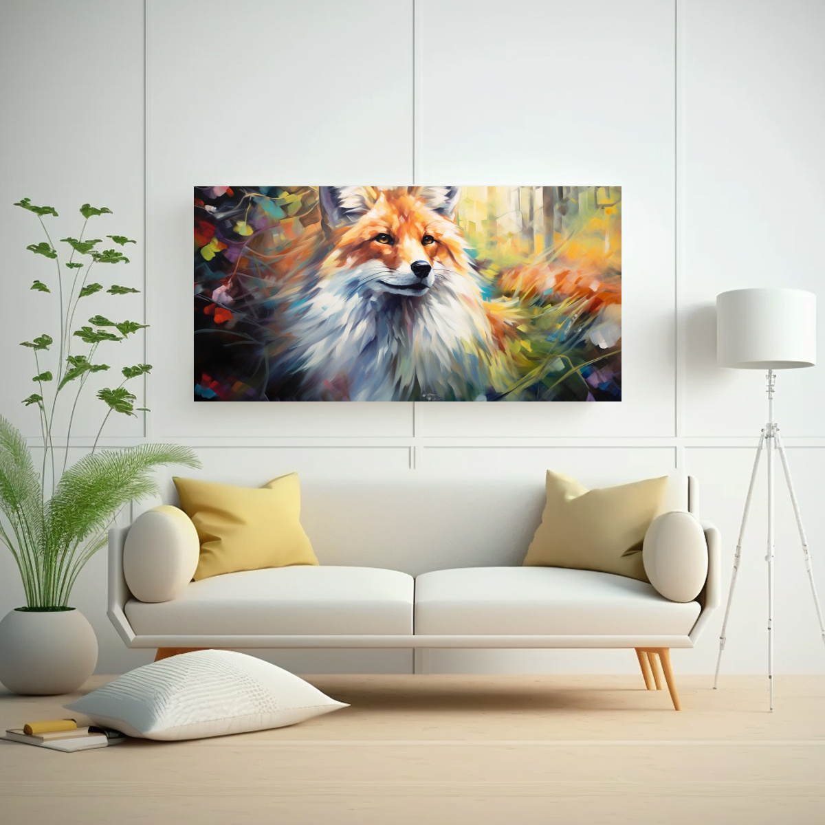 Este Cuadro Fox encajaría perfectamente en tu sala de estar, sobre un sofá gris o beige Combínalo con cojines en tonos amarillo claro y menta para crear un ambiente fresco y acogedor ¡Atrévete a darle un toque de color a tu hogar!