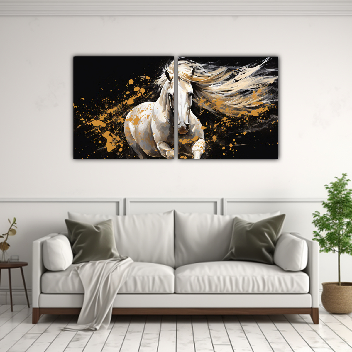 Este cuadro Friesian Horse Blanco y Dorado Arte Pop Neo es ideal para realzar la decoración de salas de estar, oficinas o dormitorios Colócalo como punto focal en una pared blanca para crear un contraste impactante y elegante Combínalo con muebles en tonos neutros para un ambiente sofisticado y moderno