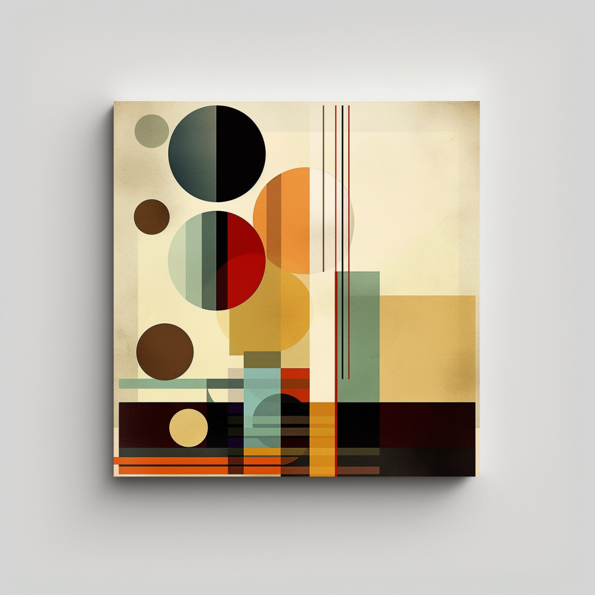 El cuadro geométrico equilibrado en tela para decoración es la elección perfecta para darle un toque moderno y sofisticado a cualquier espacio Con su composición equilibrada Bauhaus geometric en tonos Azul Marino grisaceo, Beige, Carmesi, Coral y Gris, este cuadro le dará un estilo único a tus paredes Nuestros cuadros están impresos en tela de alta calidad y montados en bastidores de madera, garantizando durabilidad y resistencia Además, ofrecemos la mejor calidad del mercado a precios económicos Entregamos de forma rápida y gratuita en Santiago, y realizamos envíos express a regiones ¡No pierdas la oportunidad de decorar tu hogar con estilo!