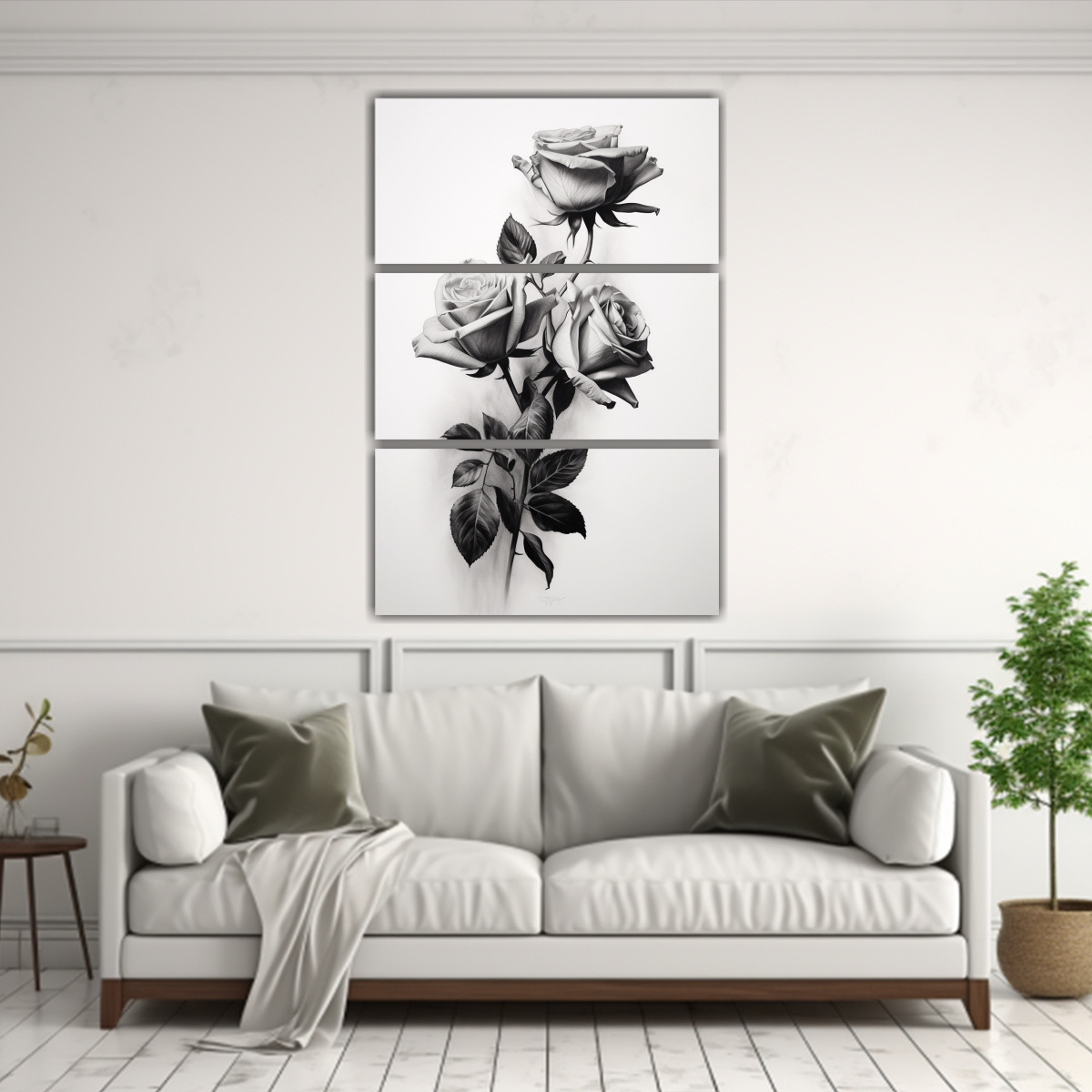 Coloca este cuadro gráfico de rosas en escala de grises en tu sala de estar para crear un ambiente elegante y sofisticado Combínalo con muebles en tonos neutros como beige y gris para resaltar su diseño hiperrealista Además, este cuadro es perfecto para agregar un toque de equilibrio visual en espacios minimalistas o modernos ¡Dale vida a tus paredes con este diseño exclusivo de DecoCuadros!