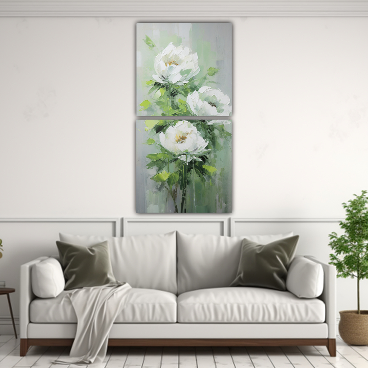 Cuadro Green PEONIES En Lienzo Estilo Pintura Decorativa.