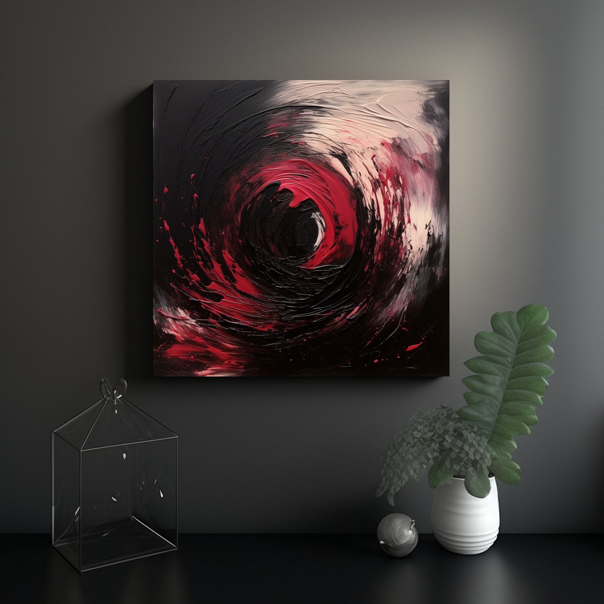 Este cuadro abstracto black and cherry es perfecto para destacar en una pared blanca o de color claro, creando un contraste elegante y moderno Colócalo en el living, comedor o dormitorio para darle un toque de sofisticación a tu hogar