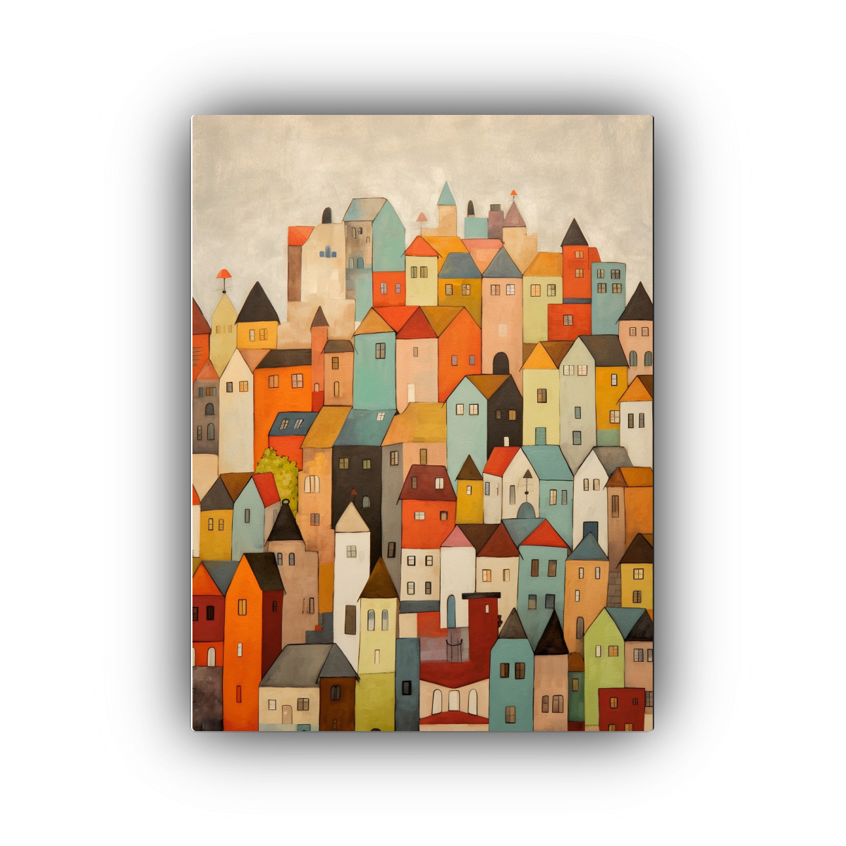 Cuadro Hermoso De Pintura Al óleo De Un Pueblo Colorido Con Colores Neutros Y Estilo Minimalista