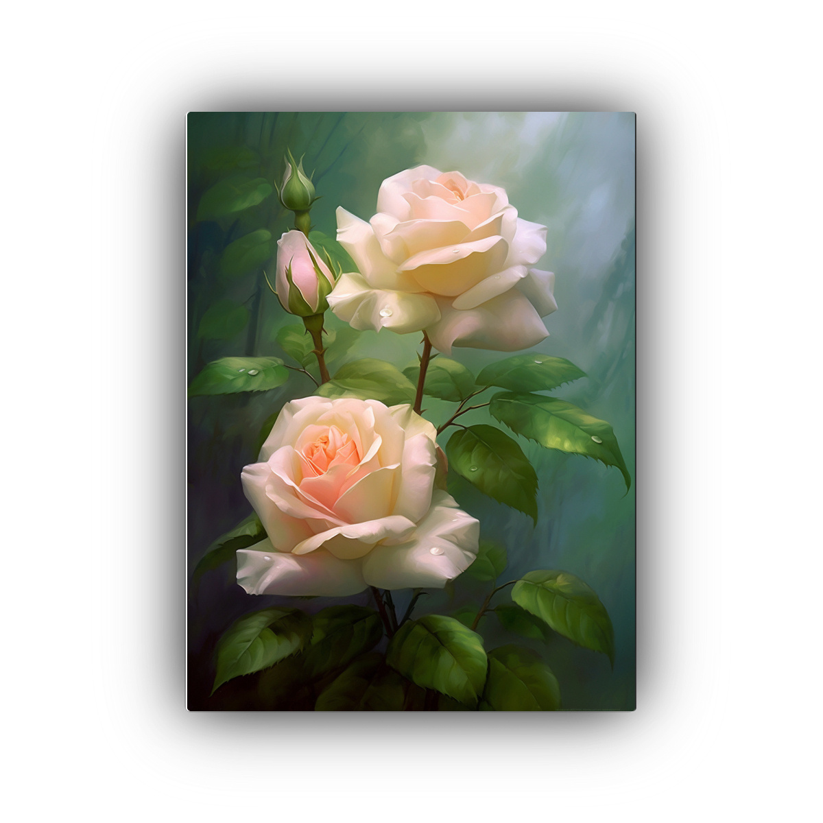 Cuadro Hermoso Profundidad: Realismo De Tres Pequeñas Rosas Blancas Arcoíris, Sus Pétalos Son