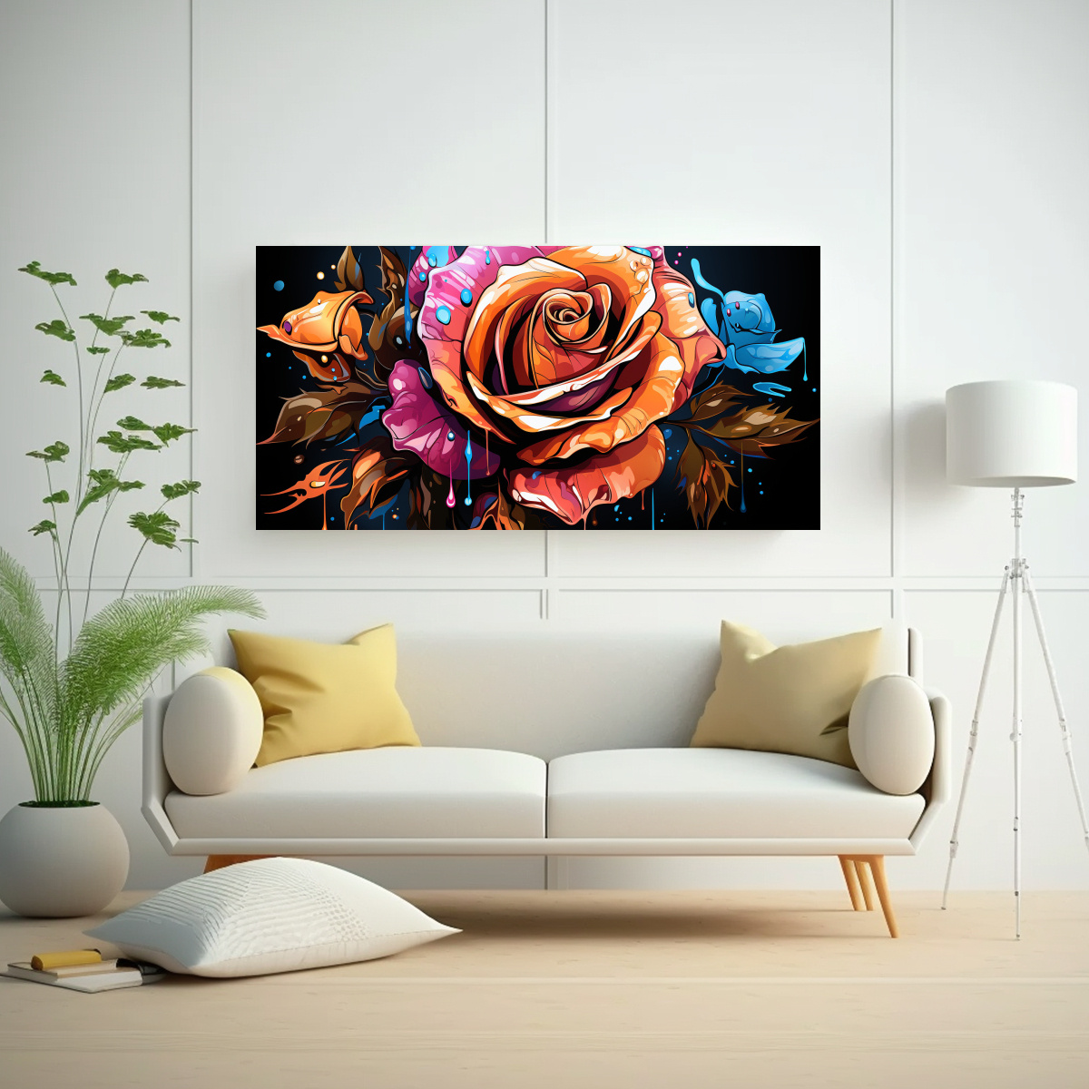 Decora tu espacio con el Cuadro Horizontal Creatividad Design, un elegante diseño de rosa estilo graffiti que dará un toque moderno y creativo a tus paredes Nuestros cuadros están impresos en tela de alta calidad con bastidores de madera, lo que garantiza una durabilidad y resistencia excepcionales Crea un aspecto 3D más realzado y moderno con nuestro Cuadro Estilo Lienzo de Galería, dos veces más grueso que un lienzo fino Montado alrededor de un marco de madera de pino de alta calidad, viene con colgador ya colocado, listo para montar inmediatamente después de desembalar Imágenes y fotos de alta definición impresas con lienzo ecológico