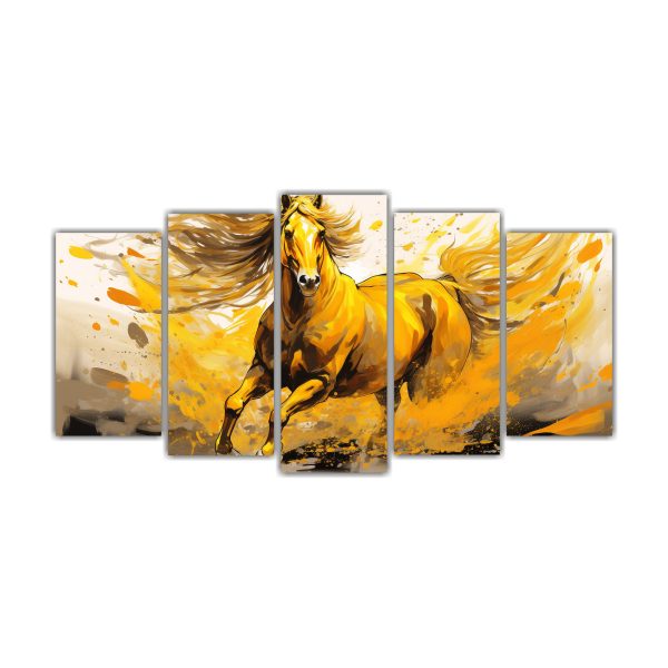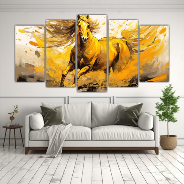 Cuadro Horizontal Estético Caballo Andaluz En Amarillo Y Oro Neo Pop Art