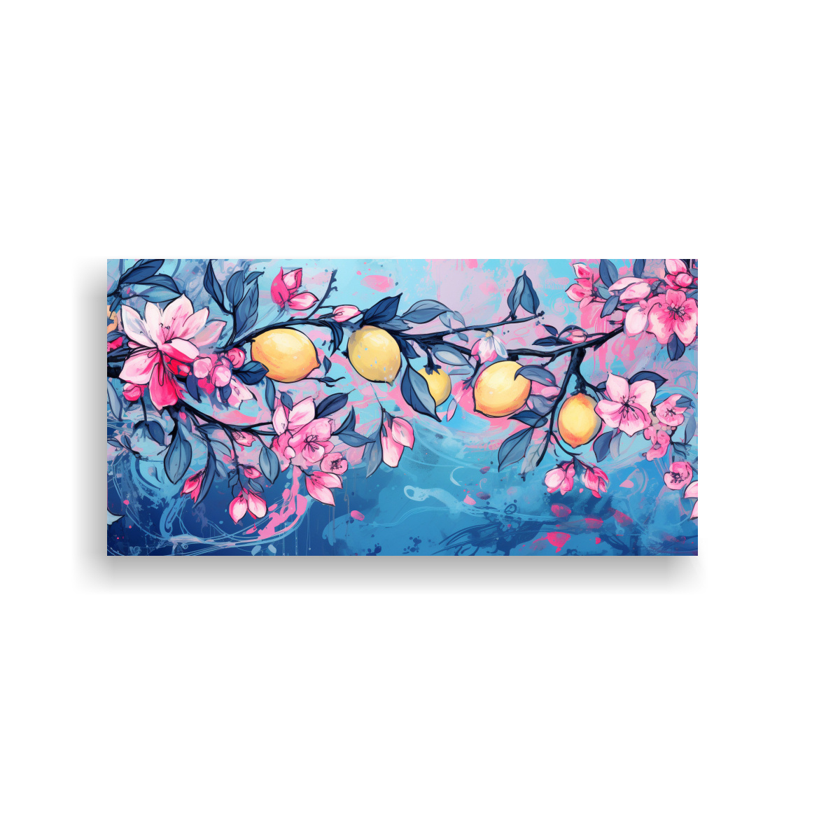 Cuadro Horizontal Multicolor Limonero En Tonos Rosa Y Azul Atmosfera Neonoir
