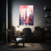 El cuadro horizontal simétrico vibrante de la ciudad de Manhattan es una pieza única que captura la esencia de esta emblemática ciudad Sus tonos azul marino grisaceo, beige, gris, carmesí, lila y coral le dan un toque vibrante y lleno de vida Este cuadro es perfecto para cualquier espacio de tu hogar u oficina, ya sea en la sala de estar, comedor o dormitorio Combínalo con muebles neutros para resaltar su belleza y crear un ambiente moderno y sofisticado