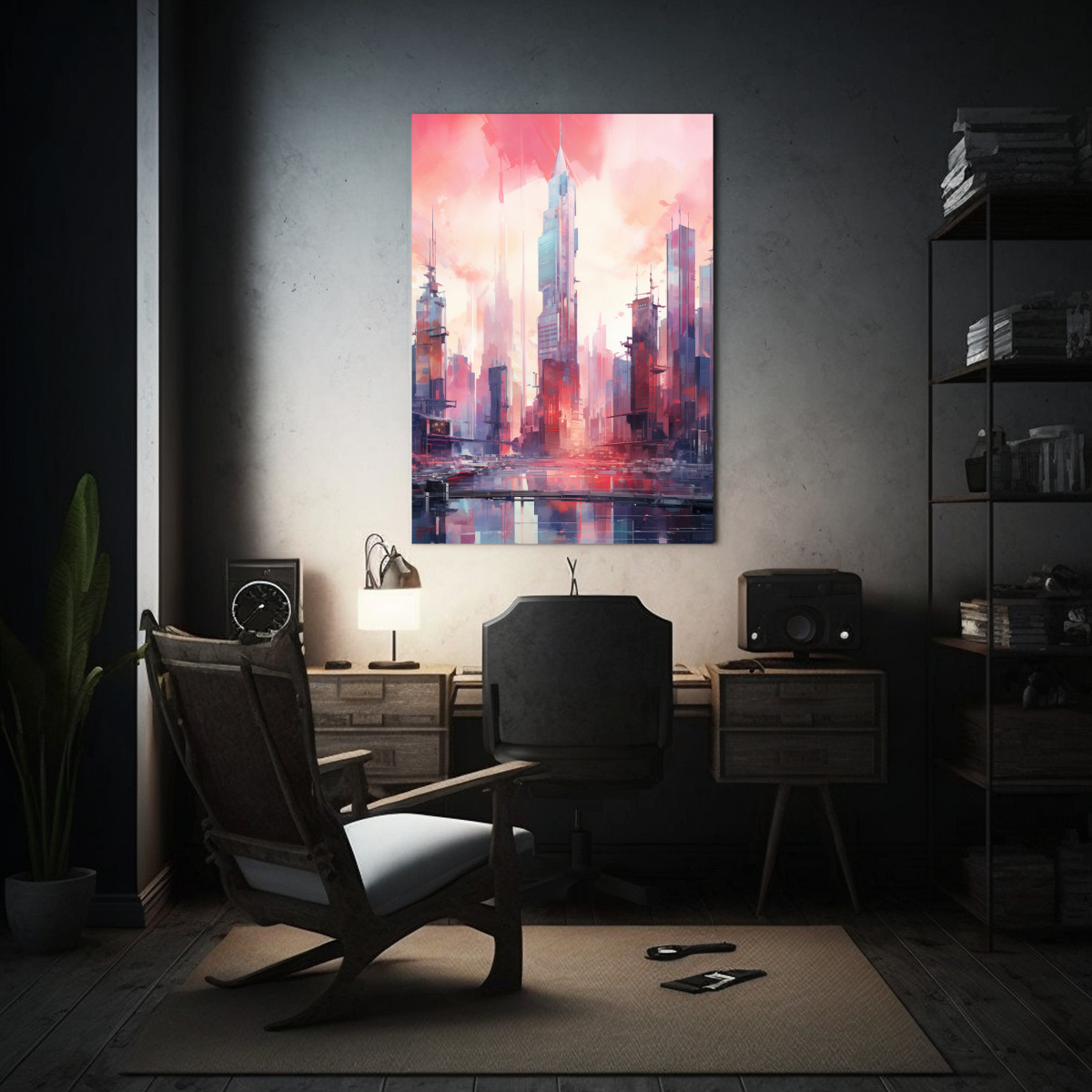 Este cuadro sería ideal para decorar tu sala de estar Colócalo sobre un sofá de color neutro, como beige o gris, y complementa con cojines en tonos coral y lila Agrega una alfombra de pelo corto en tonos beige para crear un contraste suave Completa la decoración con mesas auxiliares en madera oscura y lámparas de pie en tonos dorados El resultado será un espacio elegante y lleno de estilo