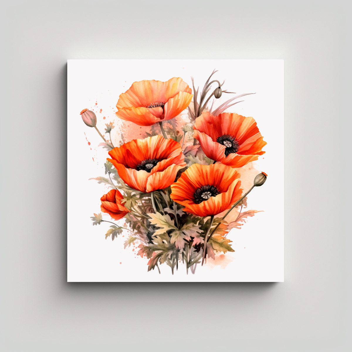 Cuadro Ilustración Moderna Clipart Transparente Verano Amapolas