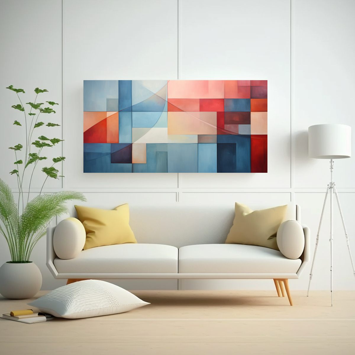 Para realzar la serenidad de tu sala de estar, coloca este cuadro Geométrico Simplicidad NY sobre un sofá de color neutro y combínalo con cojines en tonos cálidos como beige y terracota Su paleta de colores relajantes aportará armonía y estilo a tu ambiente