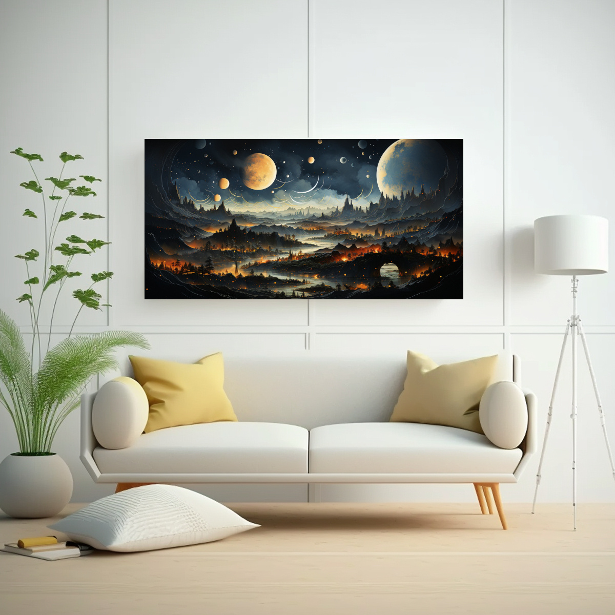 Cuadro Imagen Habitación Paisaje Montaña Fases Lunares Oro