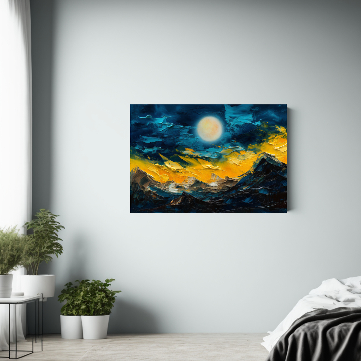 Cuadro Imagen Nocturna De La Luna Amarilla Y Montañas: Equilibrio Visual