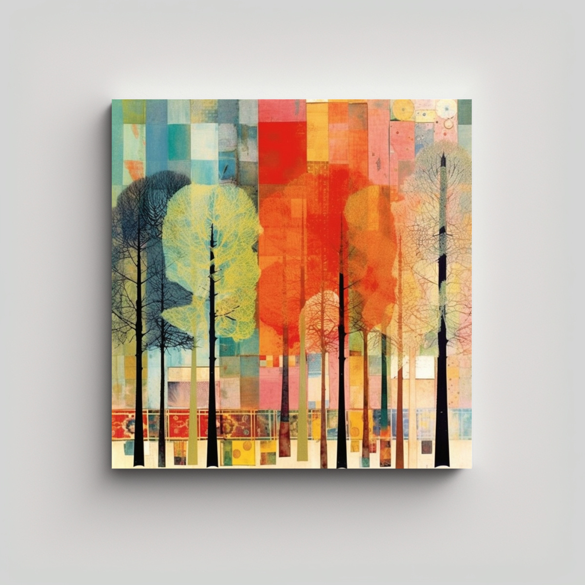 Cuadro Impactante Estilo Robert Rauschenberg Con Composición Hermosa De árboles Re