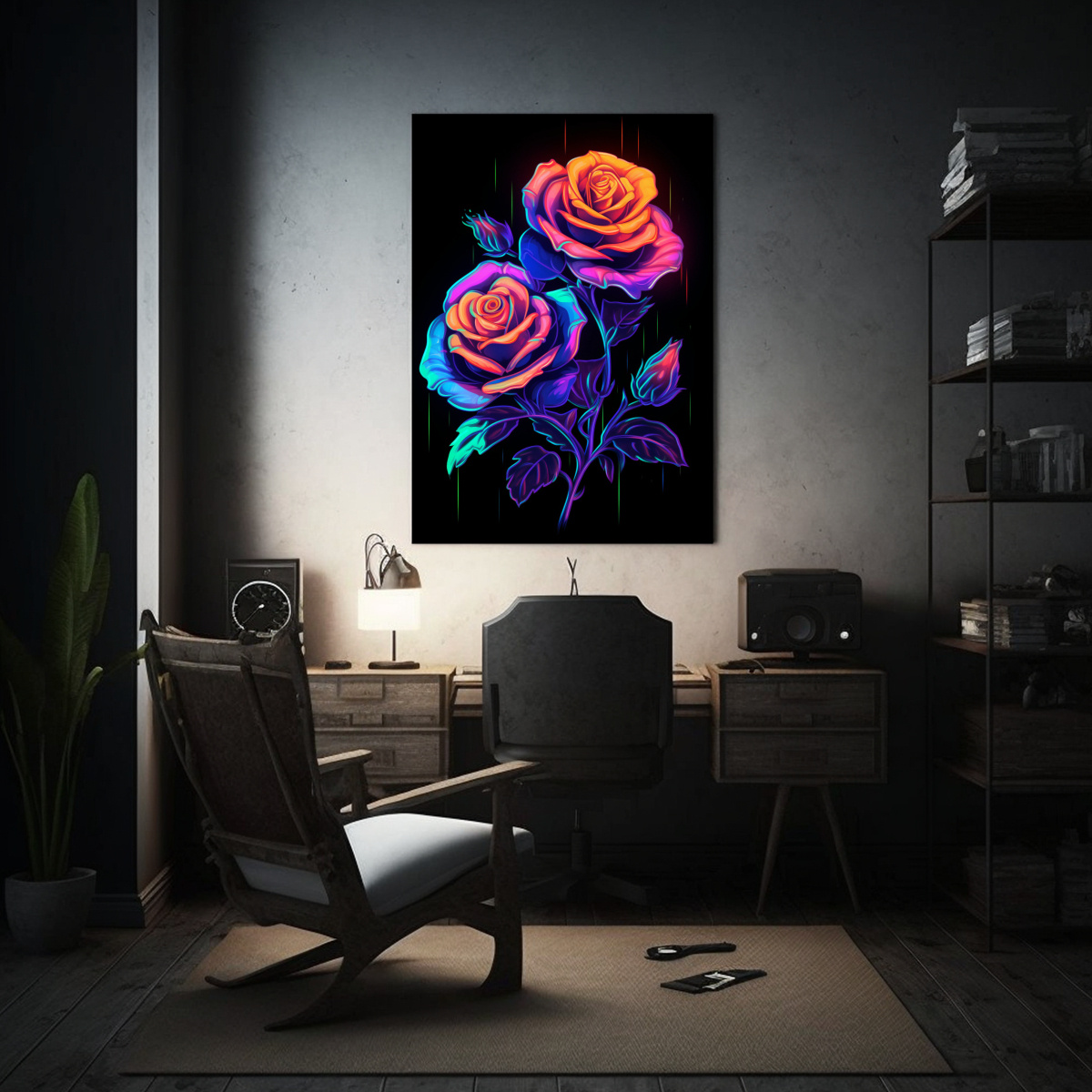 Cuadro Impresionante Con Rosas De Neón En Lienzo