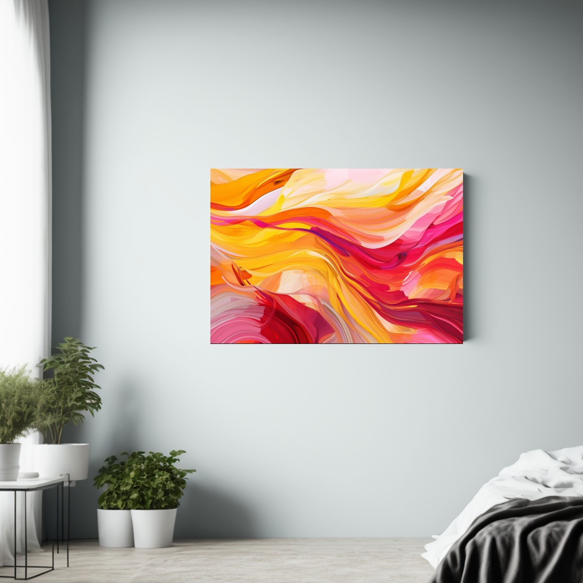 Cuadro Impreso Abstracto Original En Rojo Y Amarillo, Fondo Ondulado.