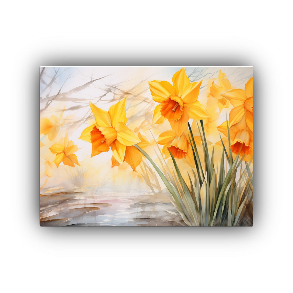 Cuadro Impreso Armonía Flores Narcisos Colores Naranja Abstracto Agua