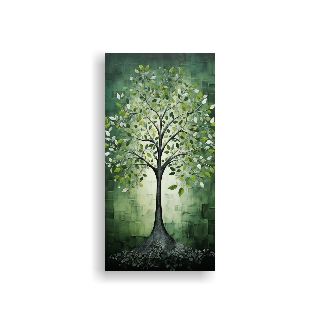 Cuadro Impreso De Árbol En Verde Y Plateado Para Decoración De Pared