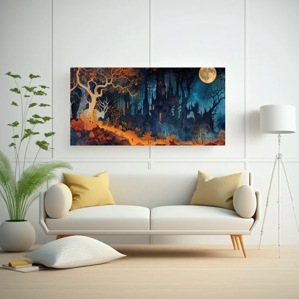 Coloca este cuadro en la sala de estar para darle un ambiente mágico y enigmático Combínalo con muebles en tonos neutros para resaltar los colores intensos del cuadro ¡Crea un espacio único y fascinante que sorprenderá a tus visitantes!