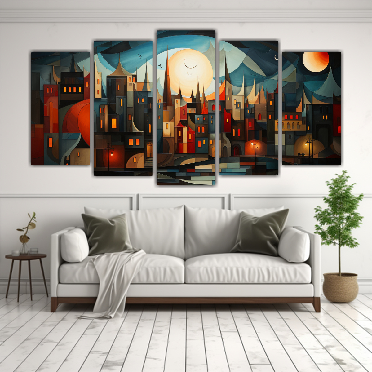 Cuadro Impreso Estilo Cubista De Una Ciudad En Contraste