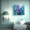 Cuadro Impreso Impactante Flores Púrpuras Y Turquesas En Lienzo
