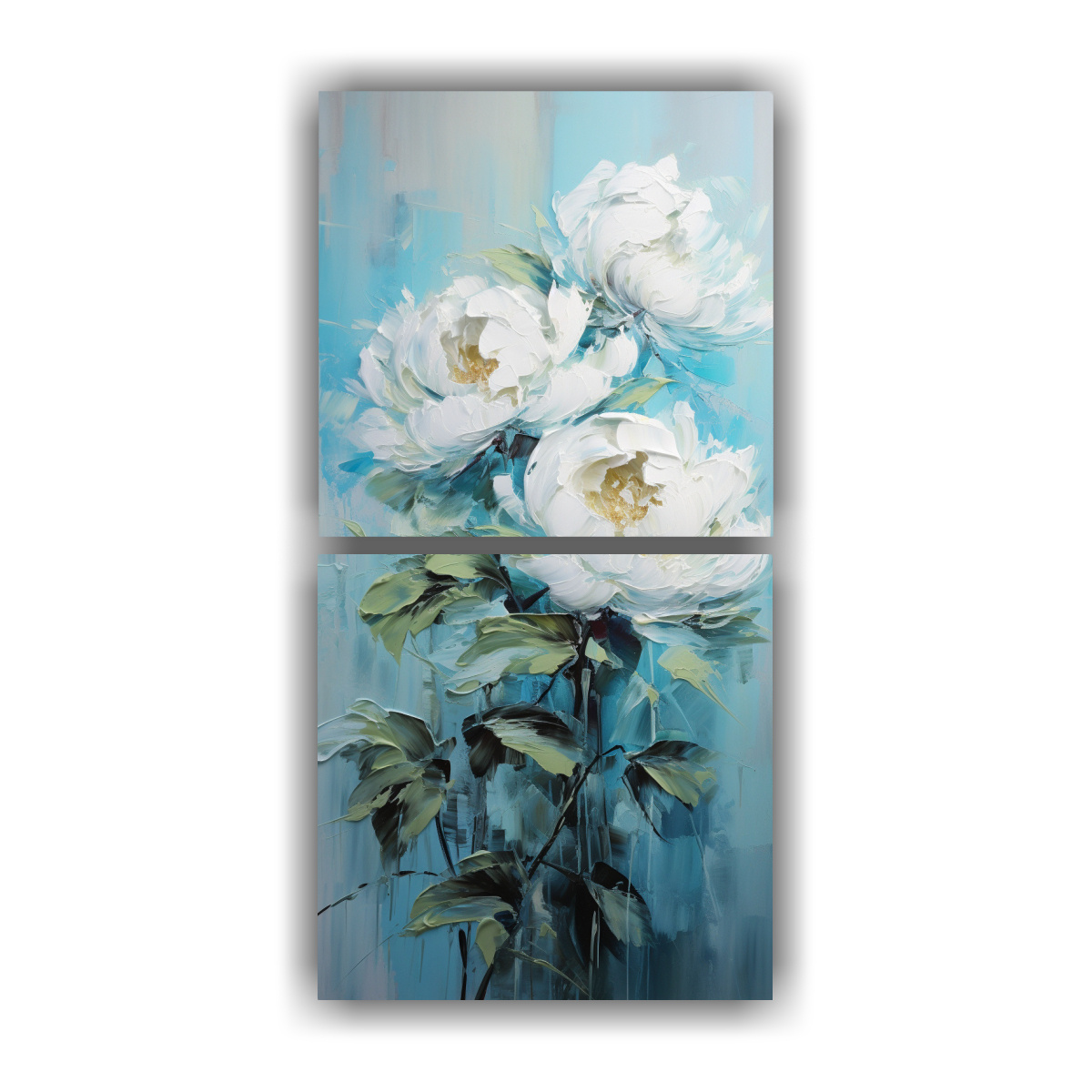 Cuadro Impreso Minimalista De Peonías Turquesa En Bastidor