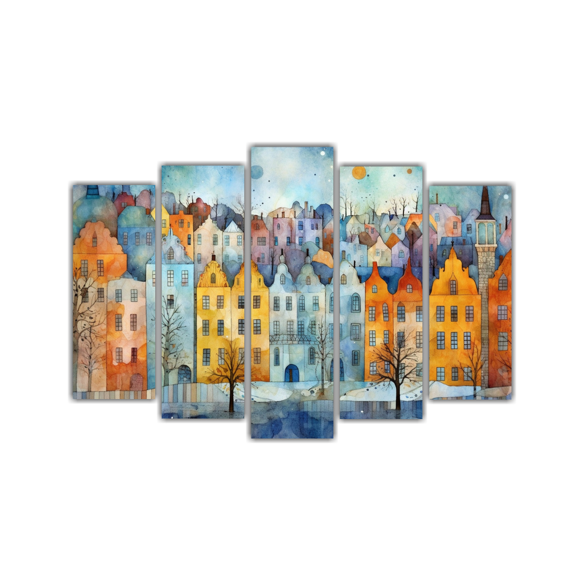 Cuadro Impreso Paisaje Ciudad Sueca Acuarela Decoración Hogar