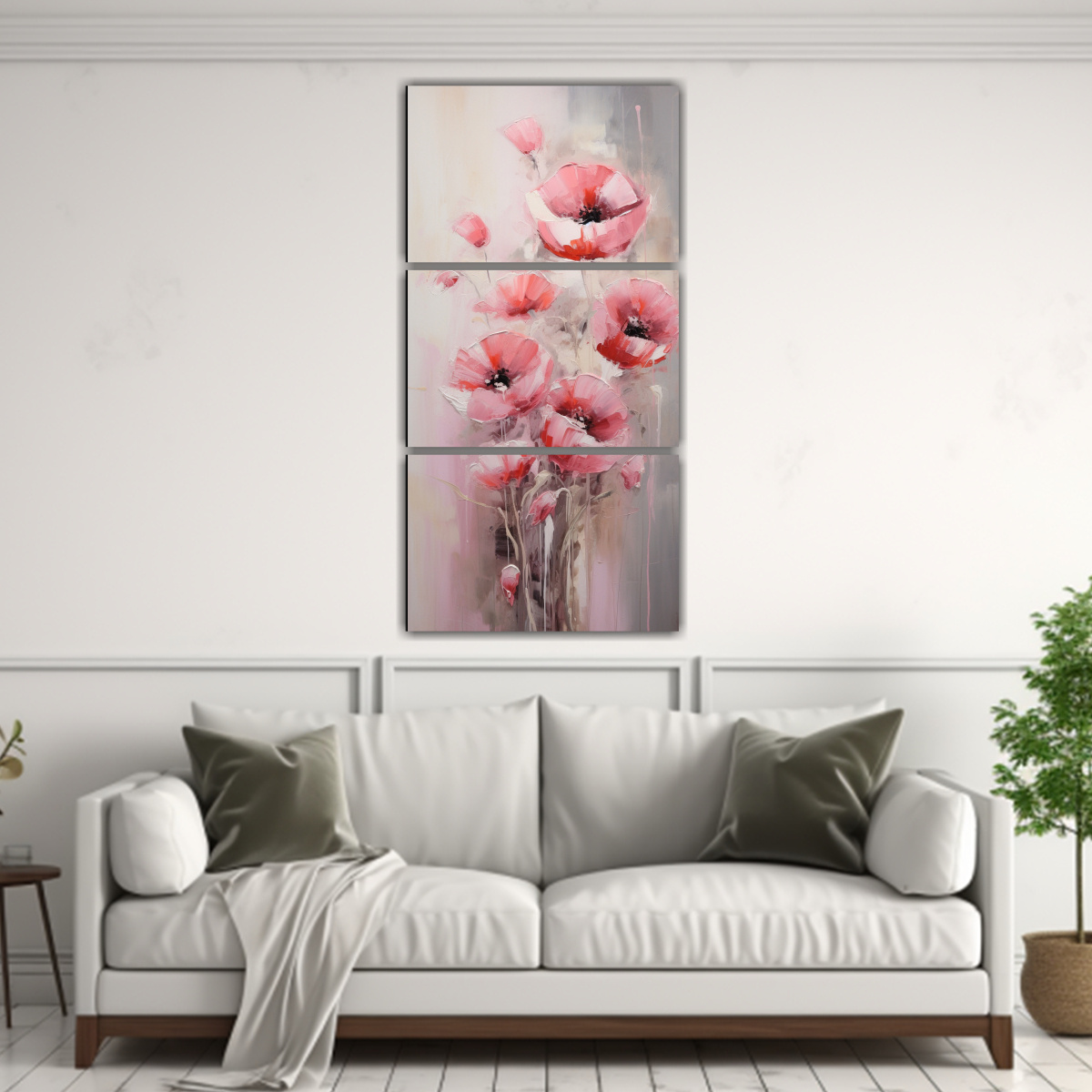 Set 3 Canvas Impreso Perspectiva a pink POPPIES painting on canvas in the style of