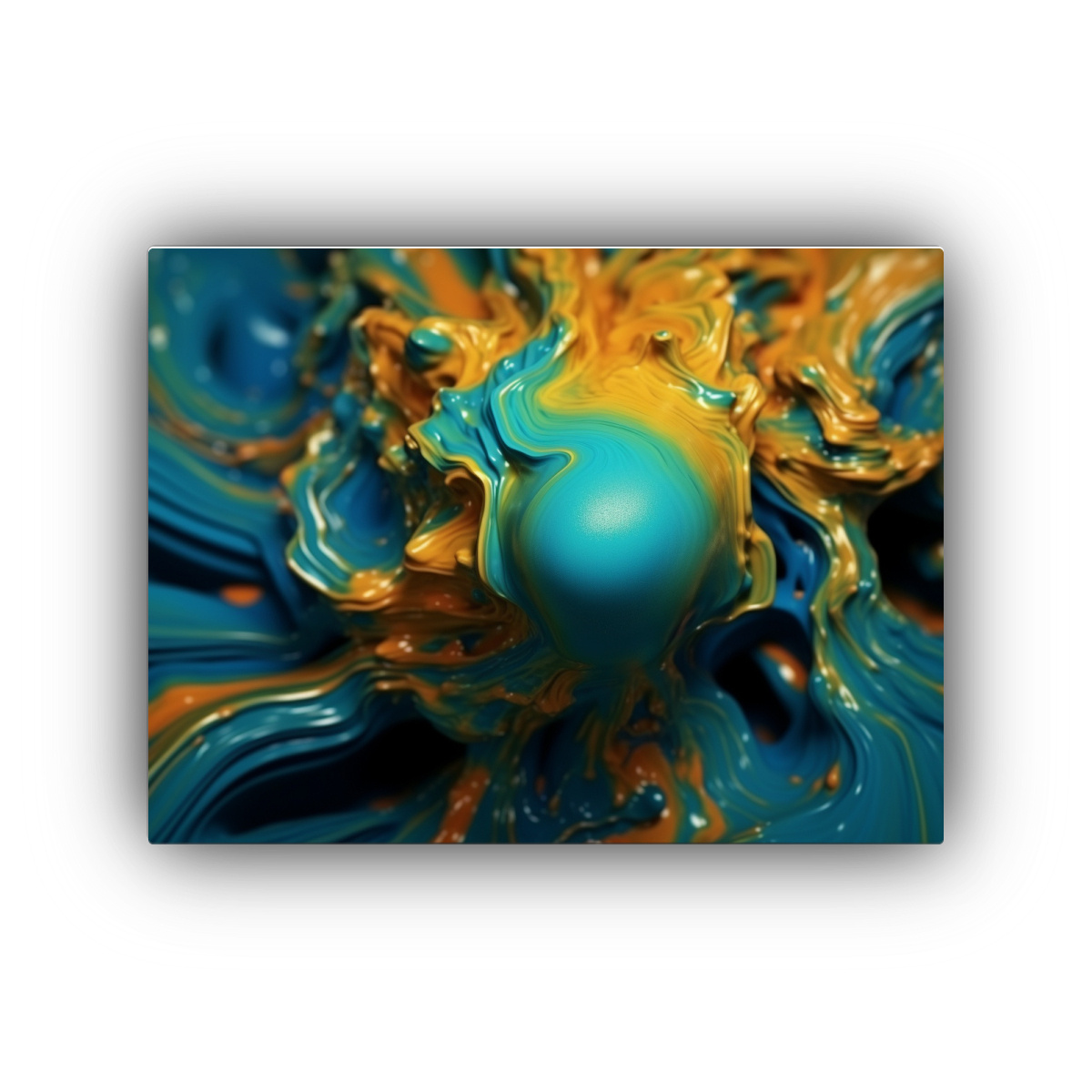 Cuadro Impreso Simetría Oro Líquido Sobre Fondo Cobalto Y Menta Brillante