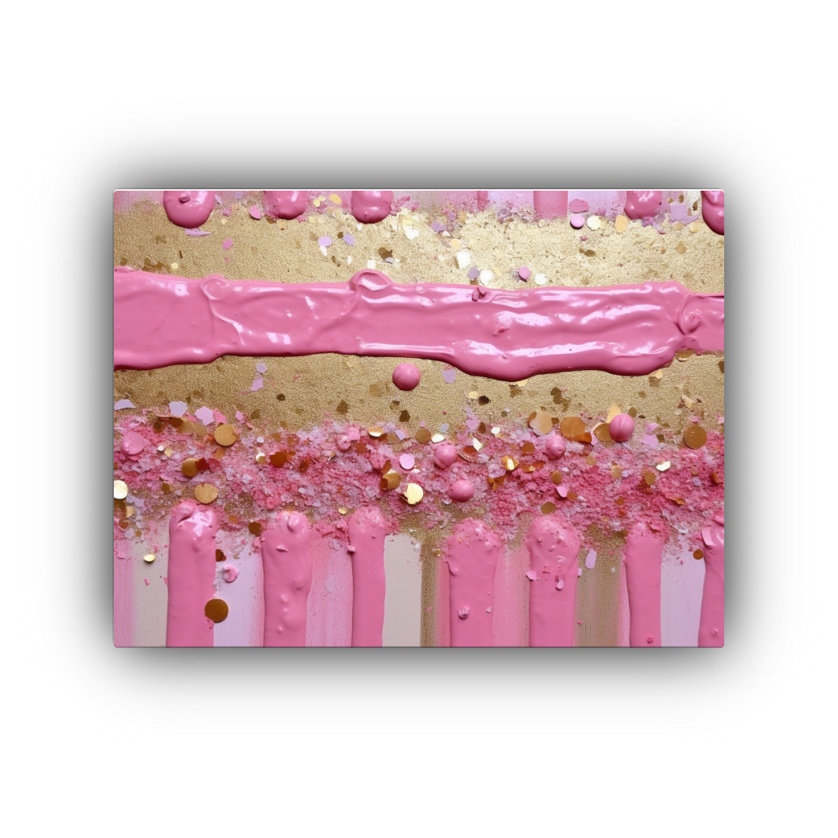 Renueva tu espacio con esta obra de arte moderna La simetría rosa sobre fondo de rayas doradas con brillo aportará elegancia y estilo a tu hogar u oficina La mejor calidad del mercado al mejor precio ¡Decora con estilo!