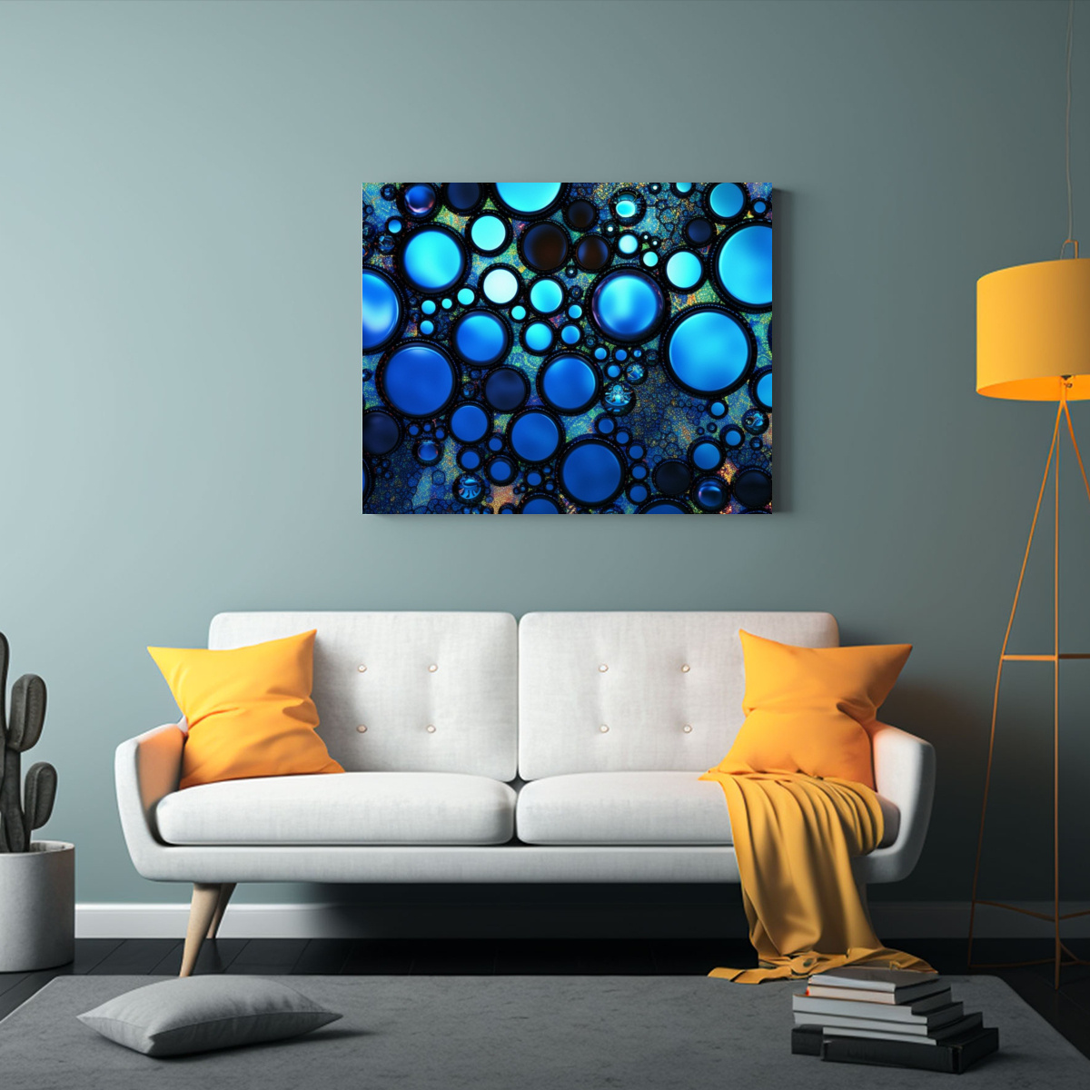 Cuadro Impreso Simplicidad Azul Y Negro Con Círculos Negros.