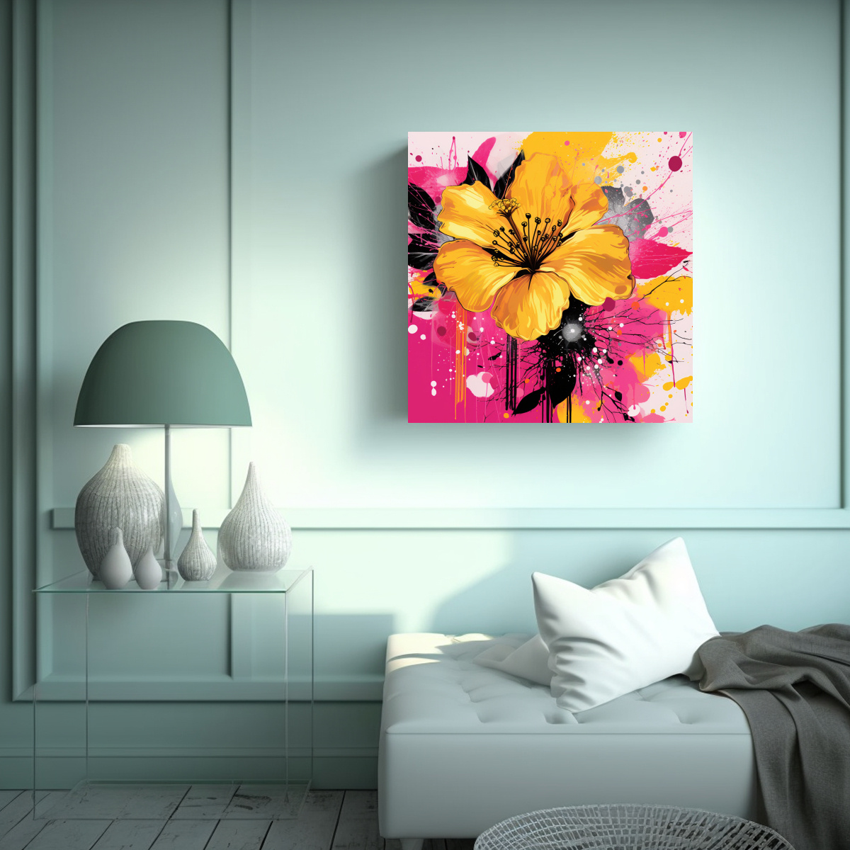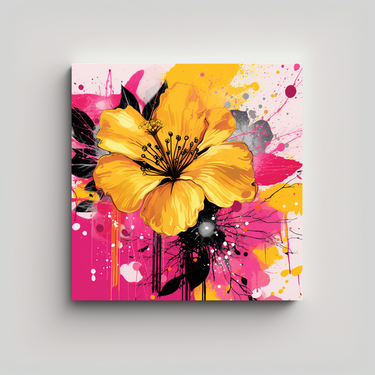 Este cuadro inspiración impacto visual amarillo y rosa es ideal para decorar salas de estar o dormitorios Su atmósfera neonoir y sus colores vibrantes añadirán dinamismo y estilo a cualquier ambiente Puedes colocarlo en una pared de color blanco para que resalte y se convierta en el centro de atención Combínalo con muebles en tonos neutros como beige o gris, y añade detalles en dorado o plateado para crear un ambiente sofisticado Este cuadro también puede ser el complemento perfecto para una decoración estilo retro o vintage ¡Atrévete a darle vida a tus espacios con este cuadro exclusivo de DecoCuadros!