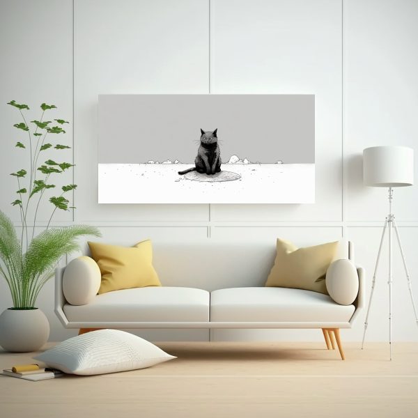 Renueva tu espacio con este cuadro minimalista que combina la esencia de los 90 con la ternura de los gatos Con la mejor calidad y entregas rápidas en Santiago, ¡DecoCuadros es tu mejor opción para decorar!