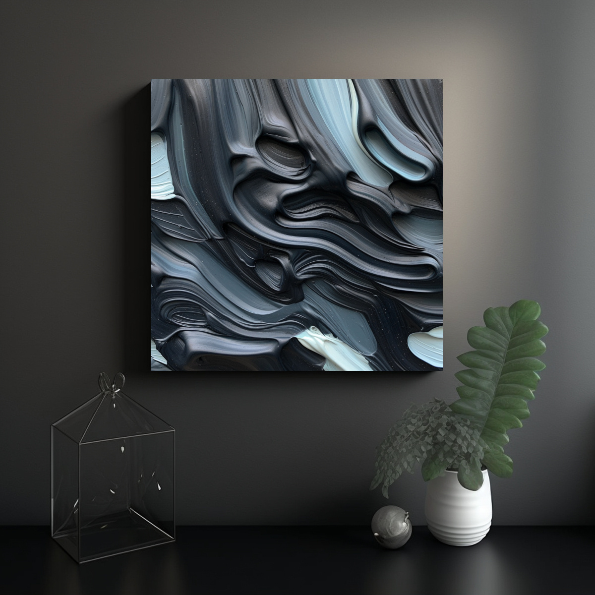 Renueva tu espacio con este magnífico cuadro abstracto en negro que brinda calidez y estilo Su combinación de colores en tonos Azul Marino grisaceo, Gris y Plateado lo convierte en una pieza única ¡Calidad premium a precios asequibles en DecoCuadros!