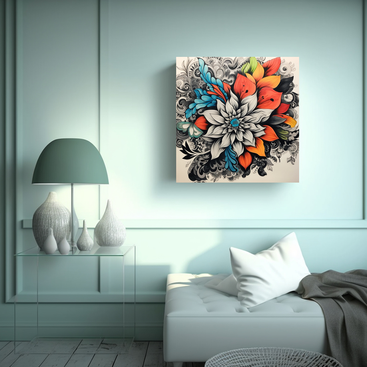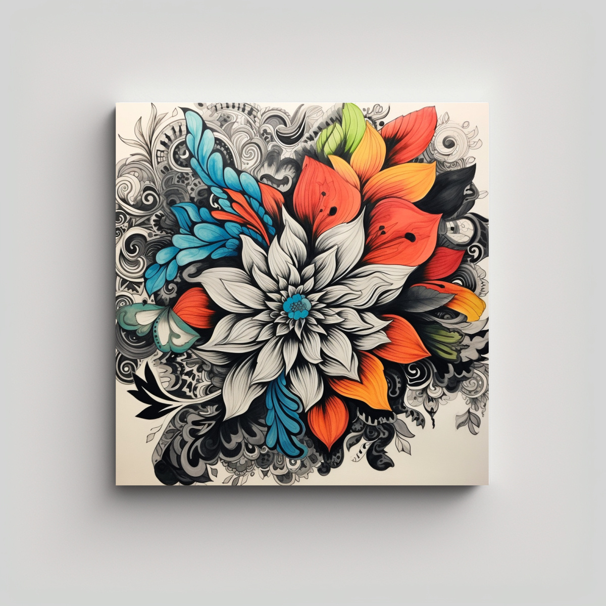 Cuadro Inspirador Canva: Flores Handrawn En Blanco Y Negro Con Color