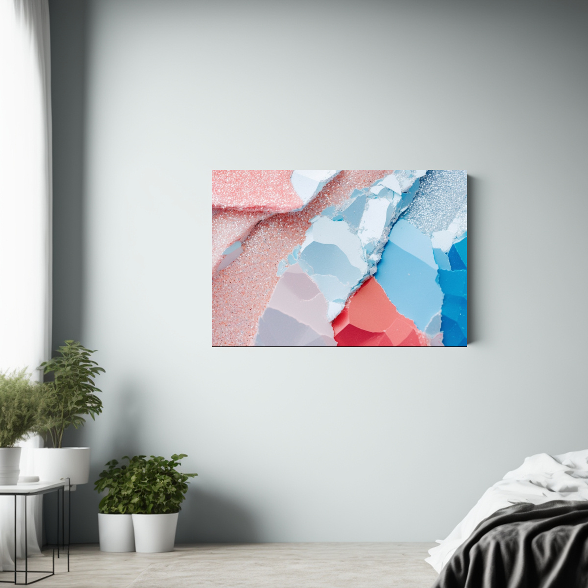 Agrega un toque de elegancia a tu sala de estar, dormitorio o estudio con este cuadro en colores Verde Azulado, Plateado, Carmesí, Coral, Turquesa, Beige, Lila, Gris y Azul Marino grisáceo Hazte ya con esta pieza única y dale vida a tus espacios