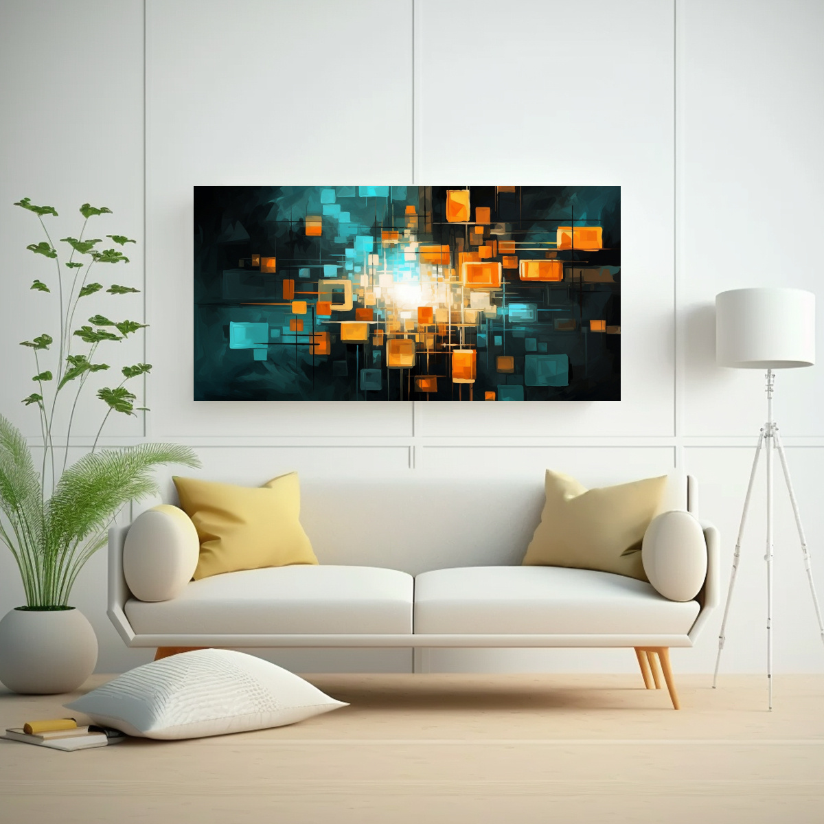 Este cuadro ‘Cuadro Inspirador Estética abstracta en azul y naranja’ es perfecto para crear un ambiente moderno y sofisticado en tu sala de estar Combínalo con muebles en tonos neutros, como blanco o gris, y agrega detalles en dorado para resaltar los colores vibrantes del cuadro Colócalo sobre un mueble bajo o en una pared libre de distracciones para que se convierta en el protagonista de la decoración